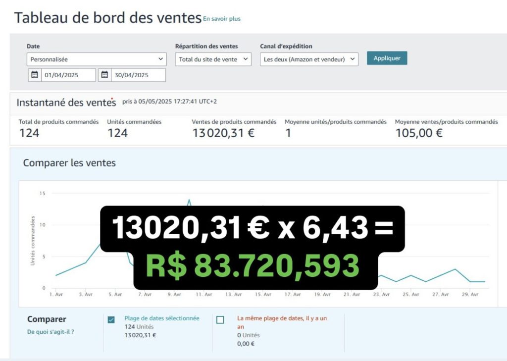 Estou compartilhando esses números não para impressionar, mas para mostrar que vivo exatamente do que ensino. Enquanto muitos “especialistas” vendem teorias, eu continuo operando meu próprio centro de preparo na França e enviando produtos para a Amazon todos os dias.